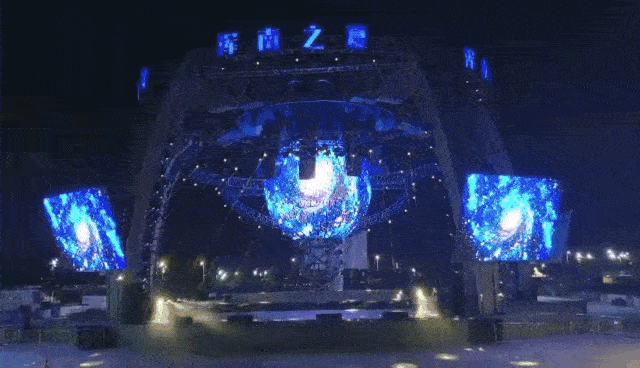 另外,环绕于舞台区域的五组总面积200m²的高清返送屏,可随支架结构上下多角度移动,满足360度视频播放需要,观众可以从任何地方看到影像画面。地面舞台配合观众最佳观赏角度,为各种表演形式提供可能。
