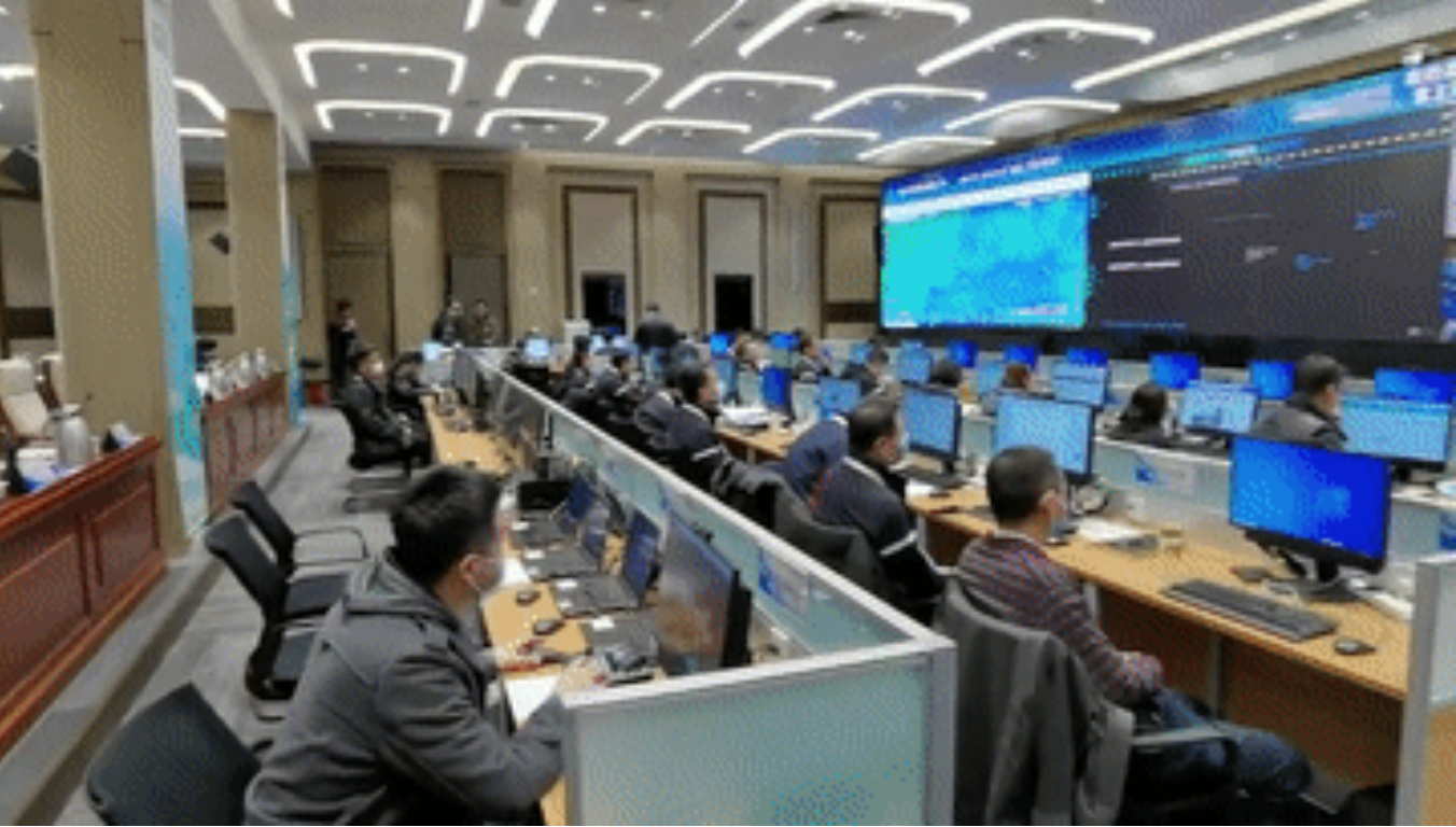指挥部内的四块主屏幕
