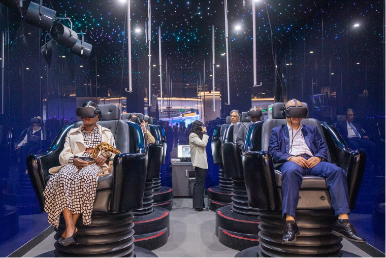 在展示中心内,驻华使节沉浸式体验K8凯发在智能显示、AI与空间计算等领域取得的技术、产品及场景应用创新成果。通过对LED智能显示、元宇宙体验舱、全息剧场、AR沉浸式全景演播室以及VR虚拟现实前沿产品的体验,感受K8凯发集团最新前沿技术及视听领域创新成果,在体验后大家对这些前沿创新成果赞不绝口。